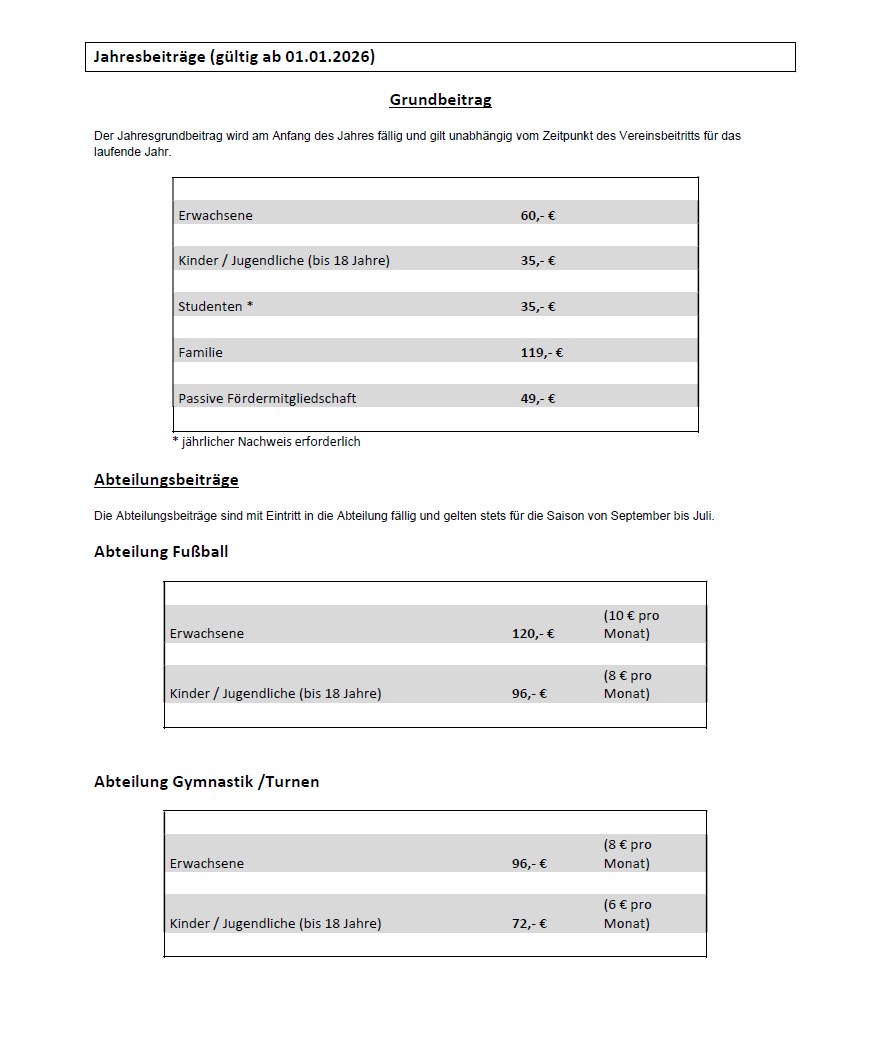 Um die Angebote des Sportvereins Straßlach zu nutzen ist grundsätzlich eine Mitgliedschaft im Hauptverein SV Straßlach erforderlich. Zusätzlich zum Beitrag des Hauptvereins wird von den Abteilungen Fußball und Gymnastik/Turnen ein Abteilungsbeitrag erhoben. Für die einzelnen Kurse der Abteilung Ski- und Bergsport werden Teilnahmegebühren festgesetzt. Die privaten Kooperationskurse bieten Ihnen durch die Vereinsmitgliedschaft ermäßigte Preise an.